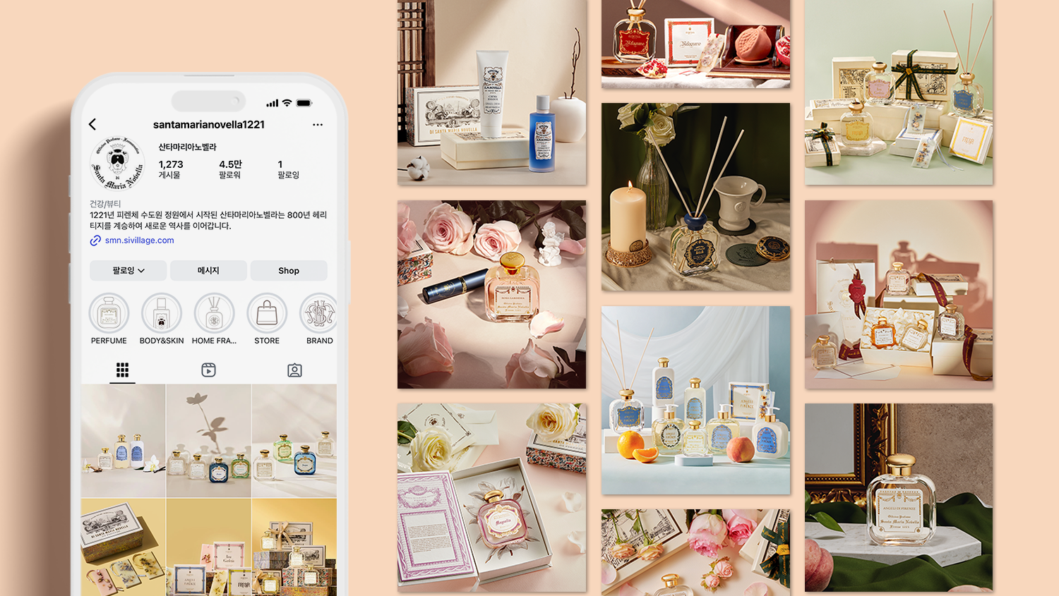 니치 향수 브랜드인 산타마리아노벨라의 공식 SNS 채널을 운영했습니다.