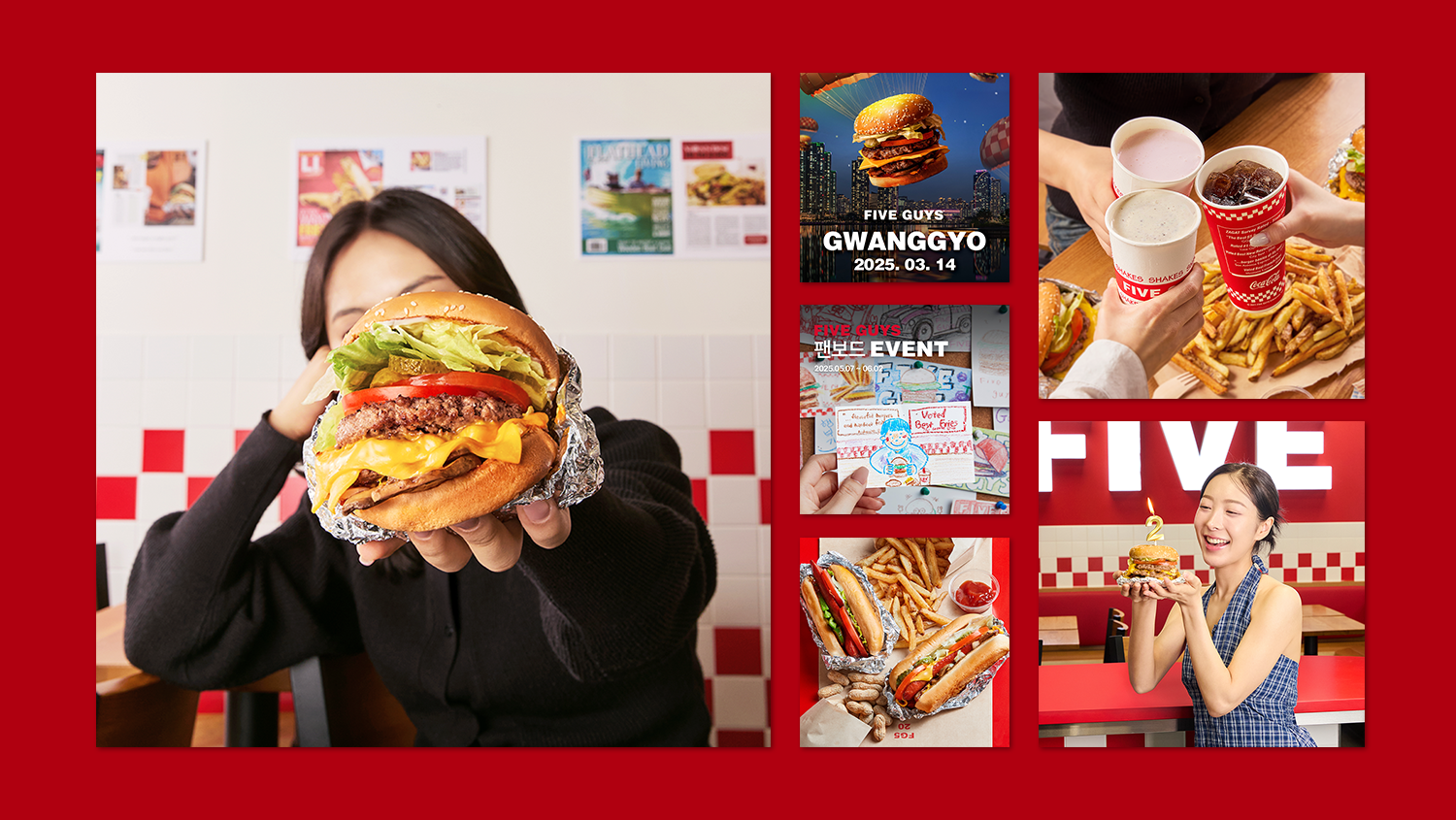 더불어 파이브가이즈만의 액티브한 모습을 전달하고자 매장 중심의 촬영을 진행하였고, 소비자 콘텐츠도 적극 활용하여 소통을 유도 하였습니다.
