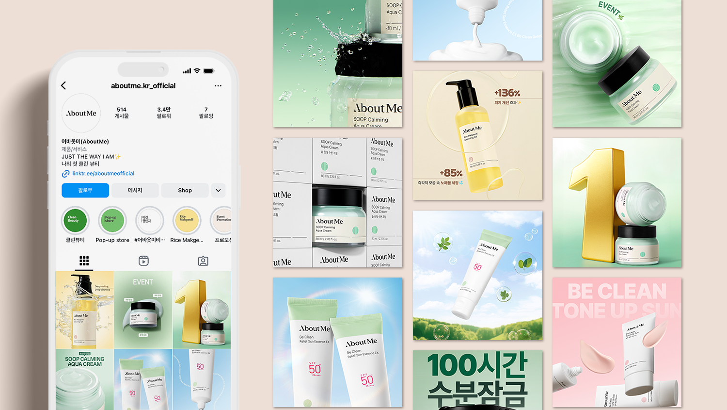 삼양사 클린뷰티 브랜드 어바웃미(ABOUT ME)의 국내 및 글로벌 공식 SNS 채널을 운영하며,